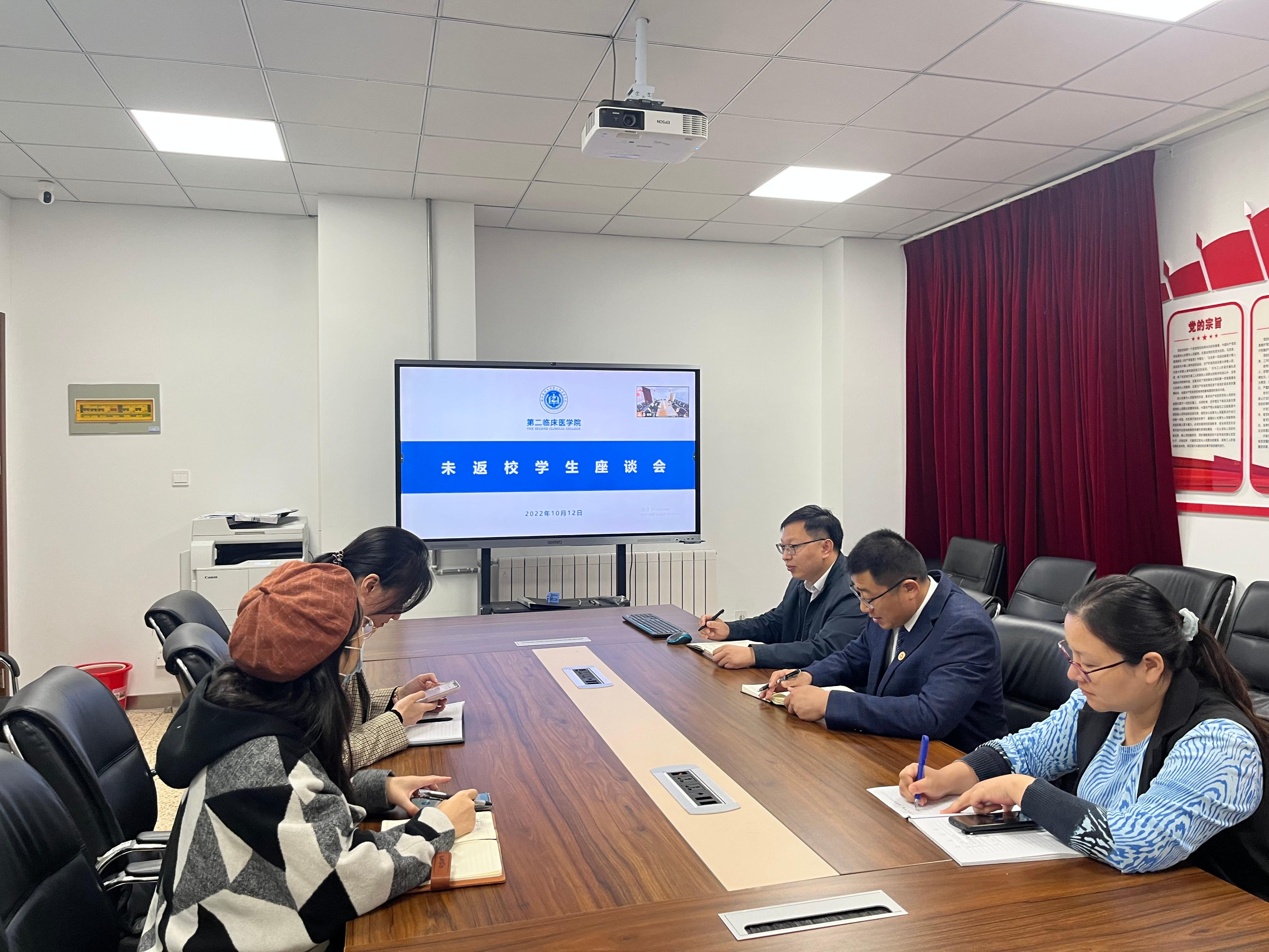 座谈会上,学院因疫情防控未能返校的学生通过视频会议发言,详细汇报了目前学习生活情况,以及在未返校情况下遇到的困难和问题,并表达了希望学院和老师在学习上提供帮助的强烈愿望。