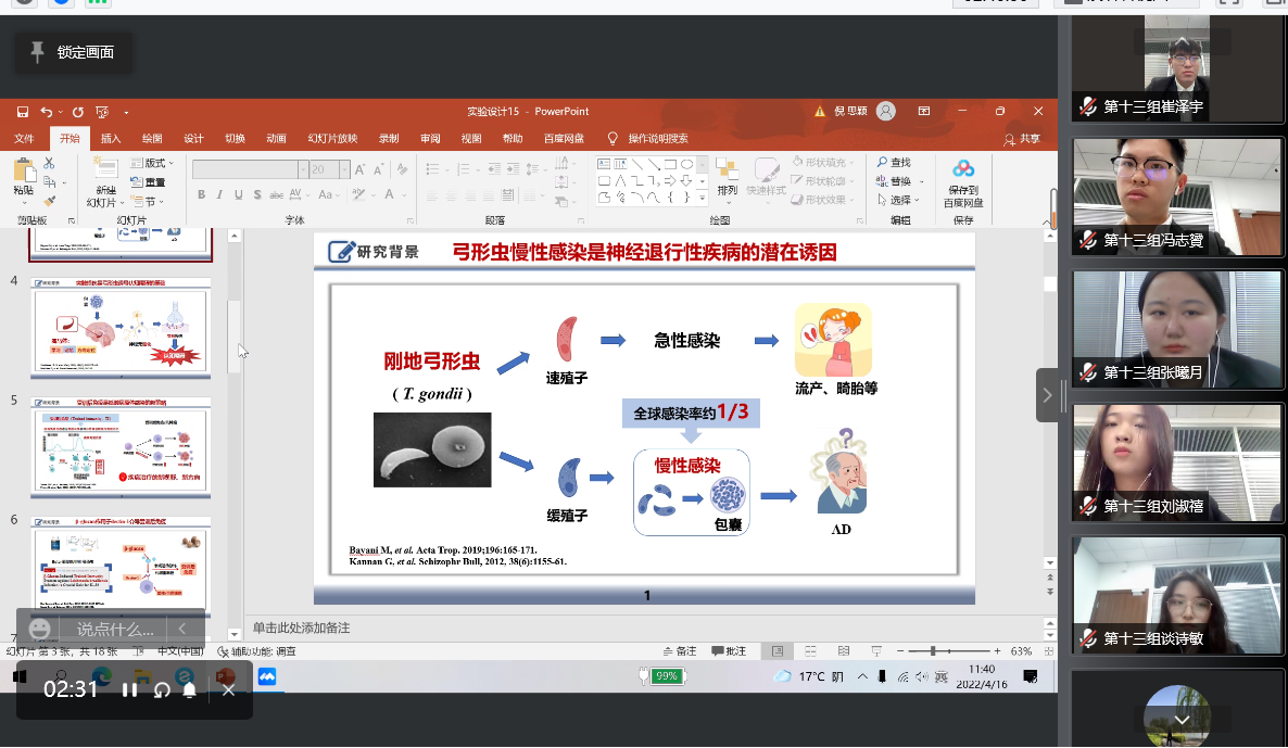 在备赛期间,各队伍成员合理分工,利用课余时间积极查阅和总结文献,同指导老师积极讨论,对课题的逻辑思路、实验方法等有了较为全面的了解。