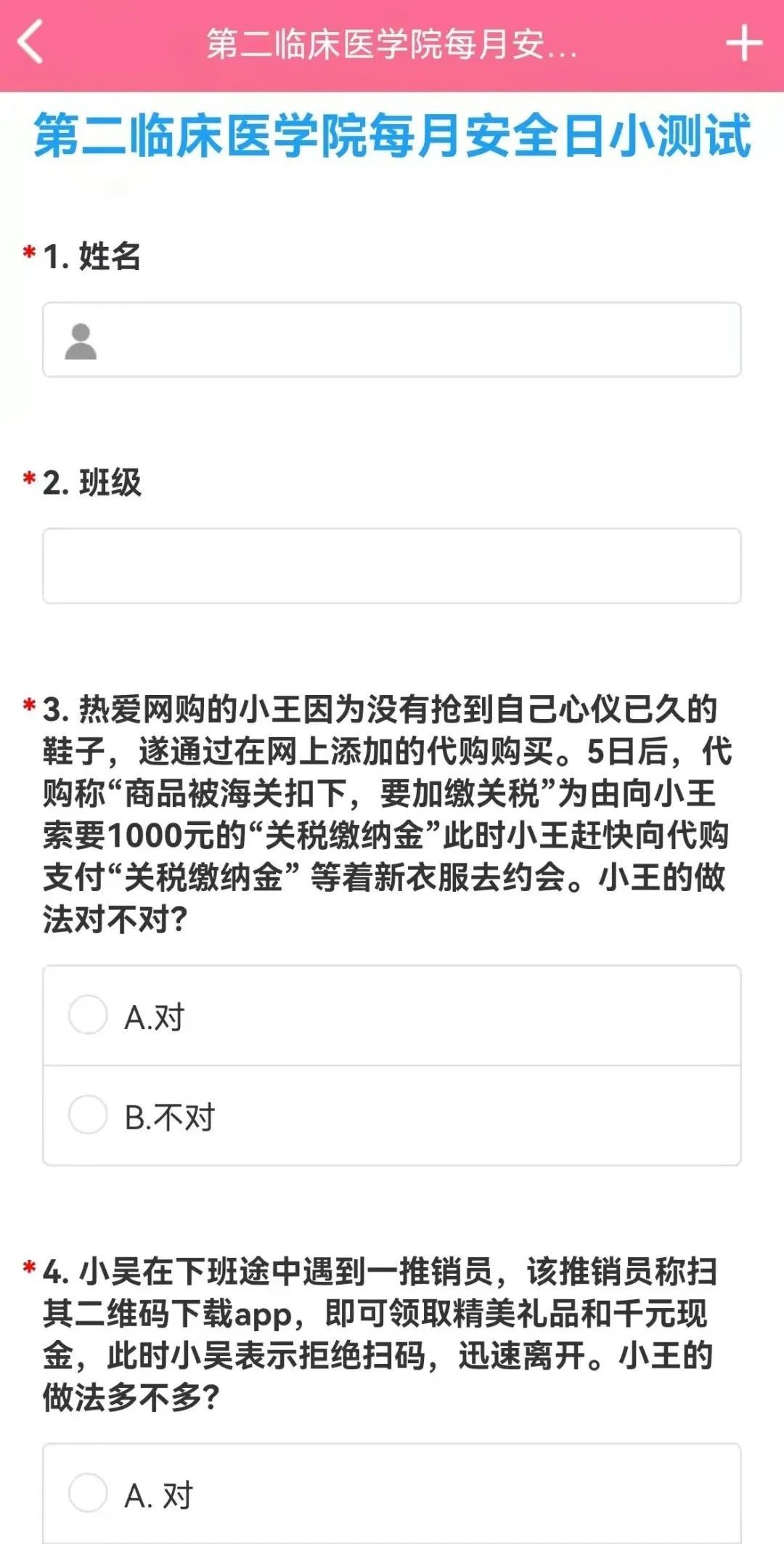 学院每月都会开展安全小测试,不断与时俱进更新题库,同学们通过分析里面有关诈骗的案例并回答问题,切实体会反诈的重要性,有助于更好地理解应用自己的所学所获。