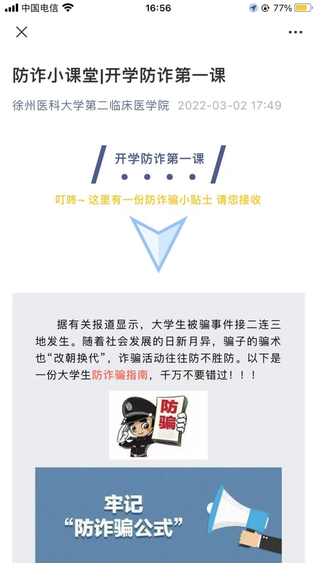 学院通过“新浦金350vip微信公众号”上专门发布了防诈骗主题的微刊进行知识宣传。